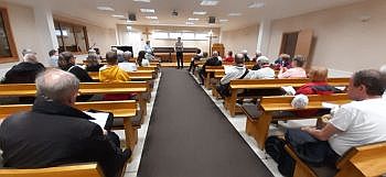 Frau Dr. Dang zeigt hier gerade auf die weiße Wand vorn, auf der im Gottesdienst die Bibeltexte in russischer, deutscher und armenischer Sprache mit Hilfe eines Beamer zu lesen sind. Nach der Besichtigung des ganzen Hauses wurden wir in den großen Saal geführt, in dem mehr als hundert Gemeindeglieder beim Mittagessen zusammensaßen und auch wir dazu eingeladen wurden, Spezialitäten zu probieren. Noch lange waren wir miteinander im Gespräch, bestimmt 1,5 Stunden, bis wir uns dankbar für diesen Tag und die herzliche Aufnahme hier verabschiedeten.