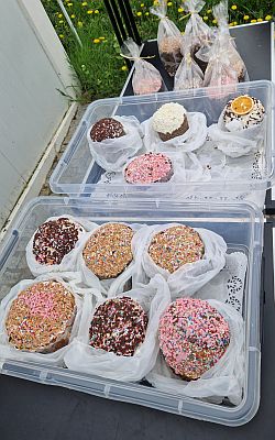 Draußen auf dem Hof konnten wir traditionellen Osterkuchen gegen eine Spende erwerben.