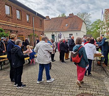 Zur Stärkung für den Weg gab es Suppe und Brötchen vom Marzahner Gasthof. Auch stießen hier Gemeindeglieder des Apostelamts Jesu Christi zu uns, die bis 11 Uhr ihren Gottesdienst in der Dorfkirche gefeiert hatten. Die evangelischen Gemeinden Marzahn und Marzahn/Nord hatten ihren gemeinsamen Gottesdienst dort schon um 9 Uhr gehabt und waren einschließend hier im Gemeindehaus beim Osterfrühstück zusammen.